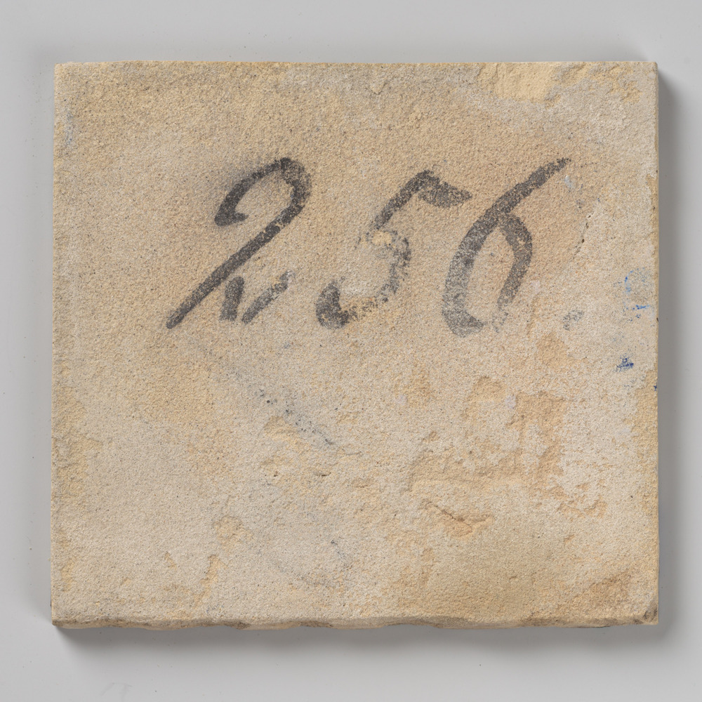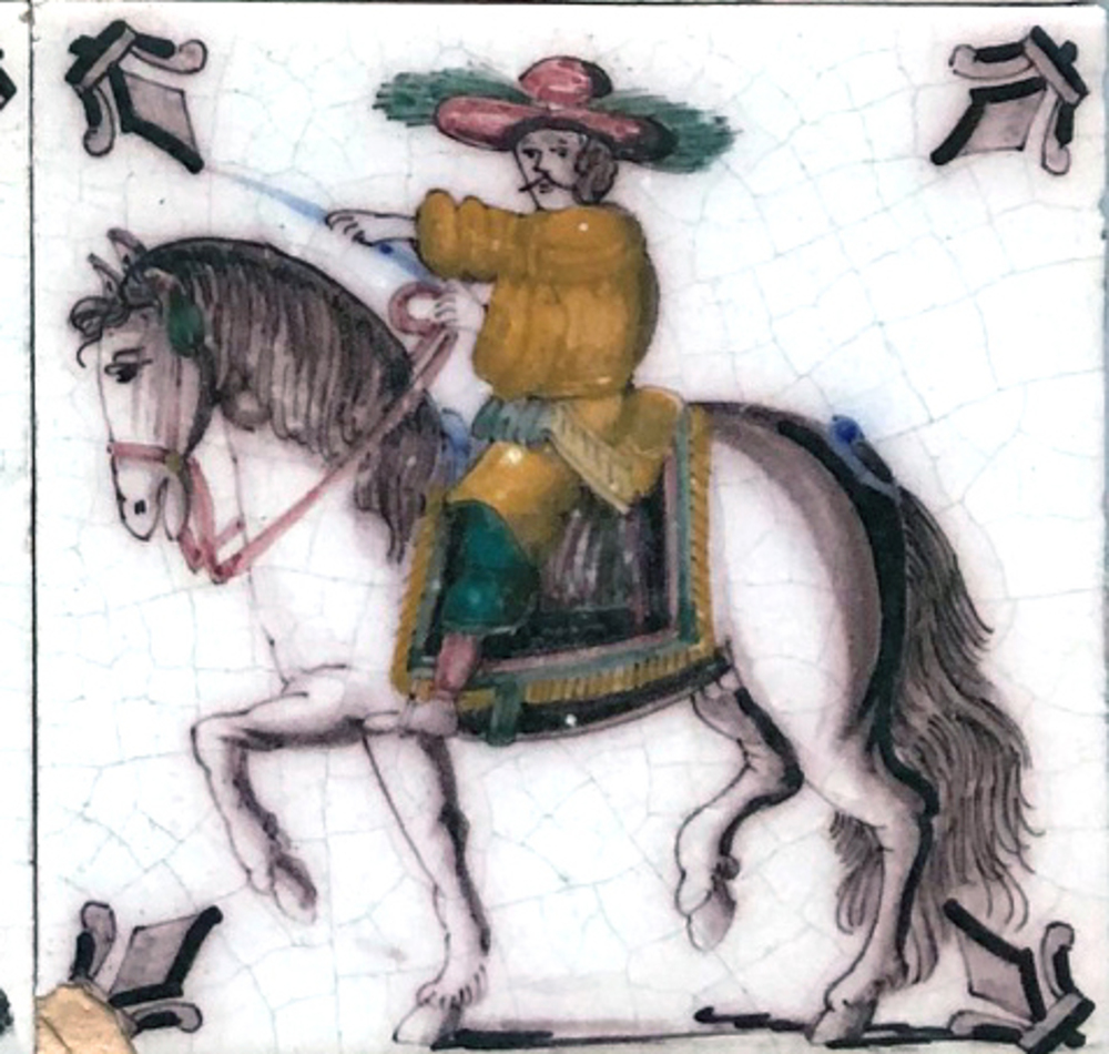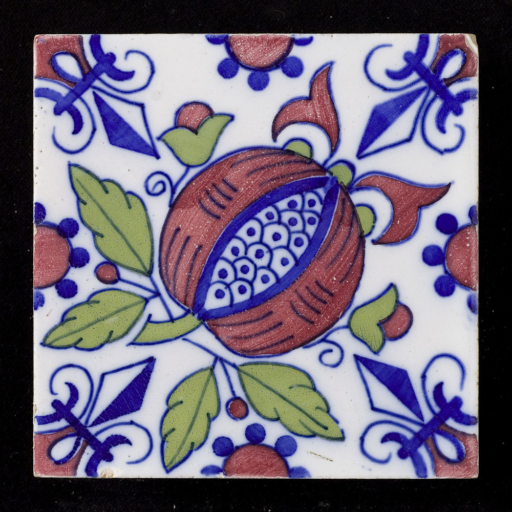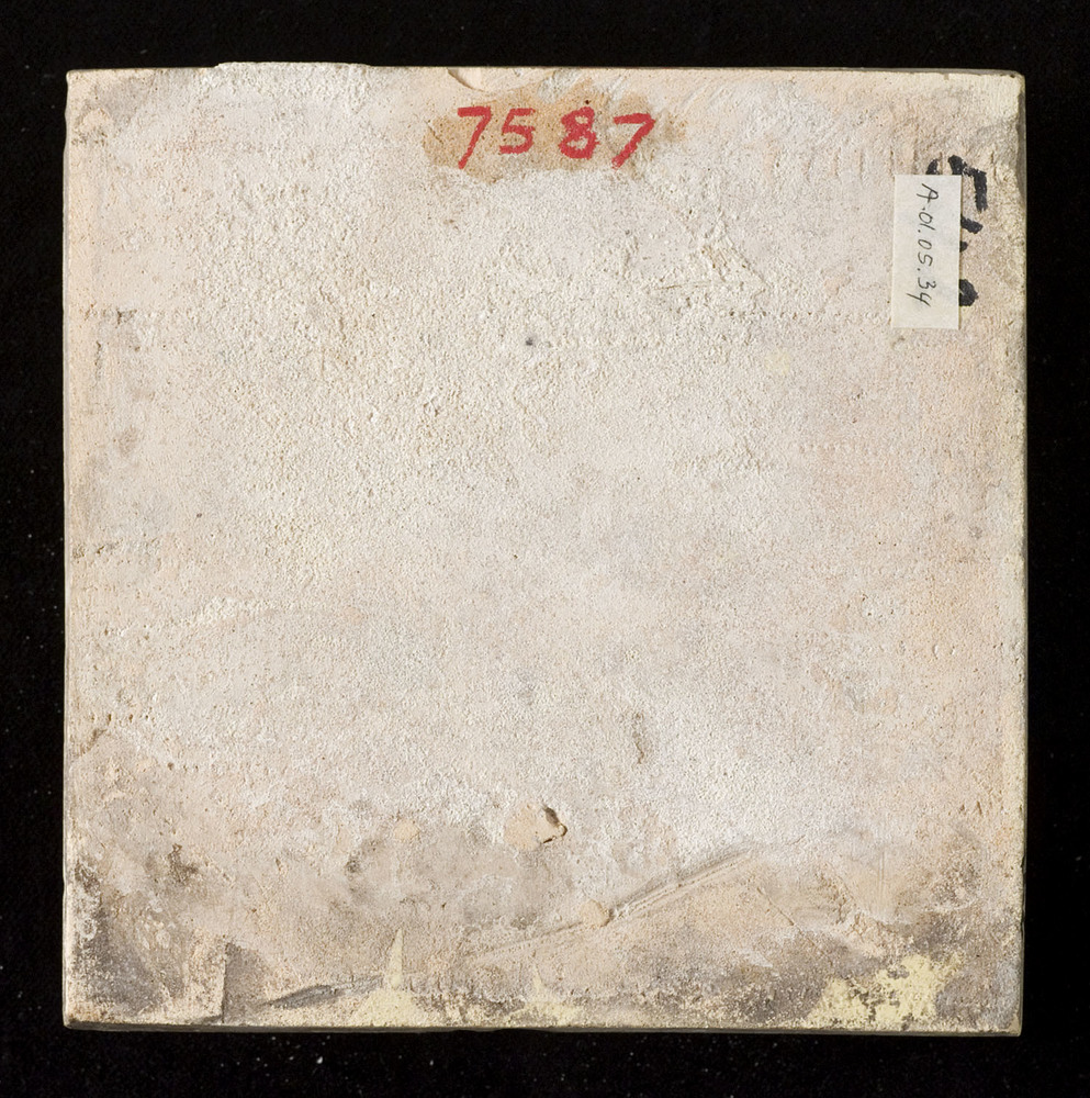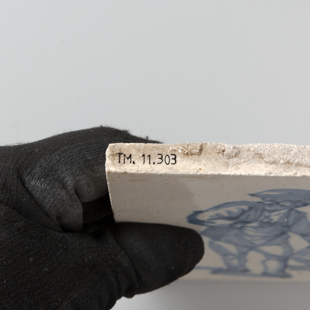 tegel van keramiek met tinglazuur, voorstellende: ru...