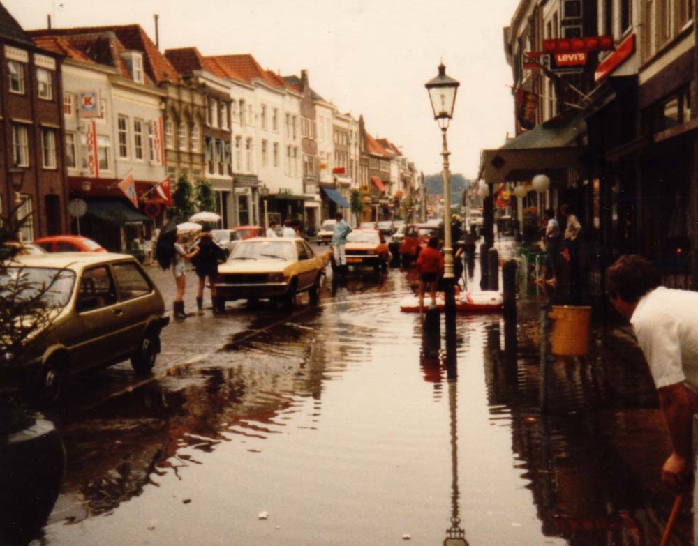 Water overlast in de Waterstraat in de jaren zeventig