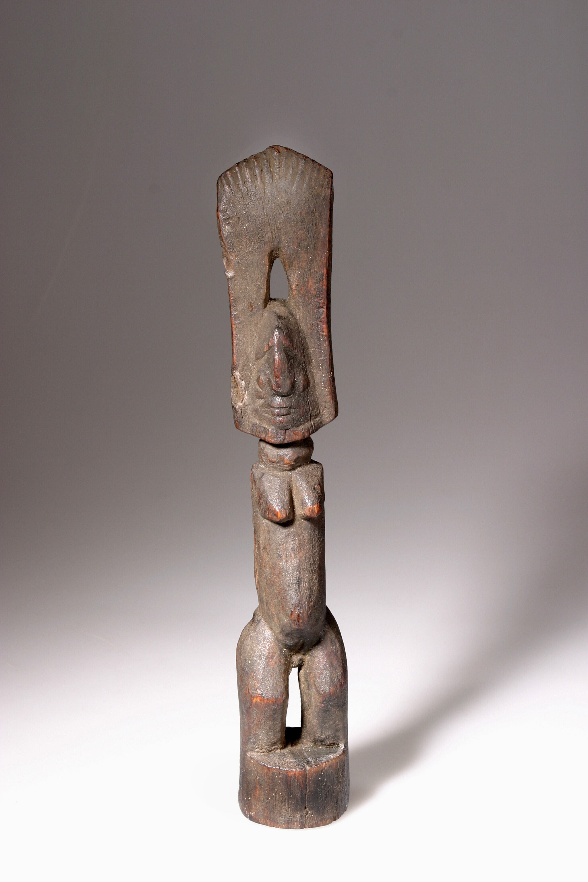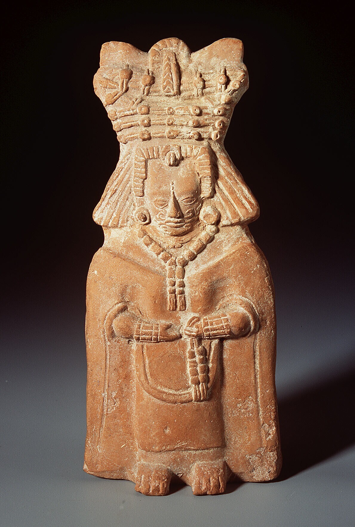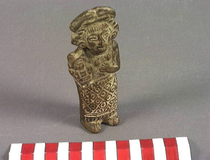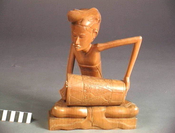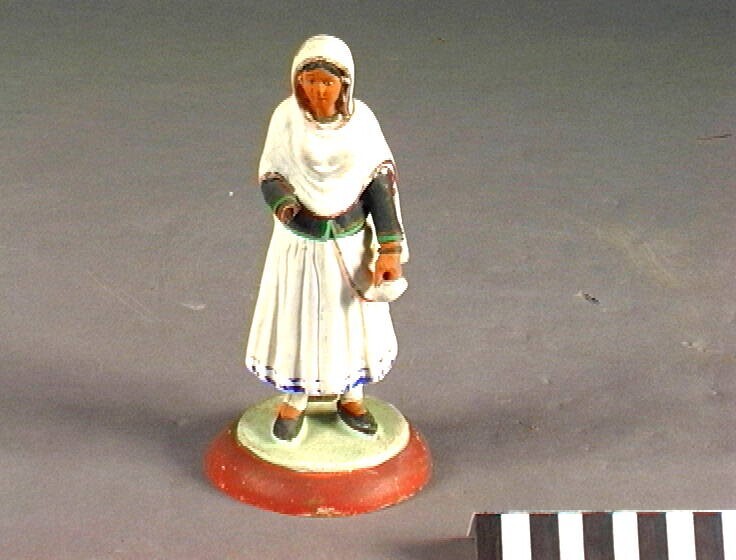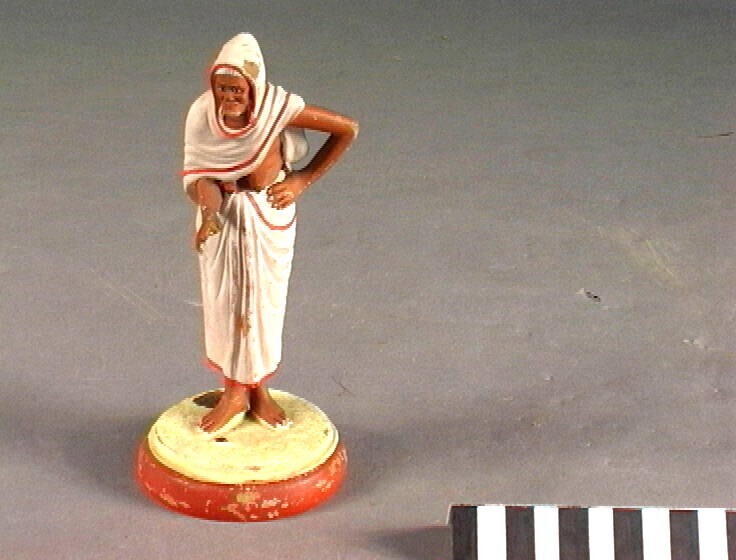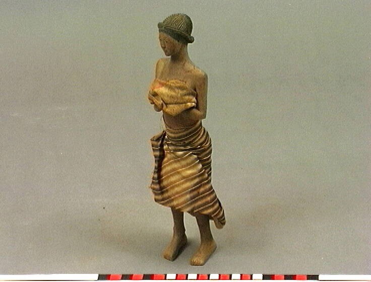 Beeld: een vrouw met een hoofdtooi en wikkelrok