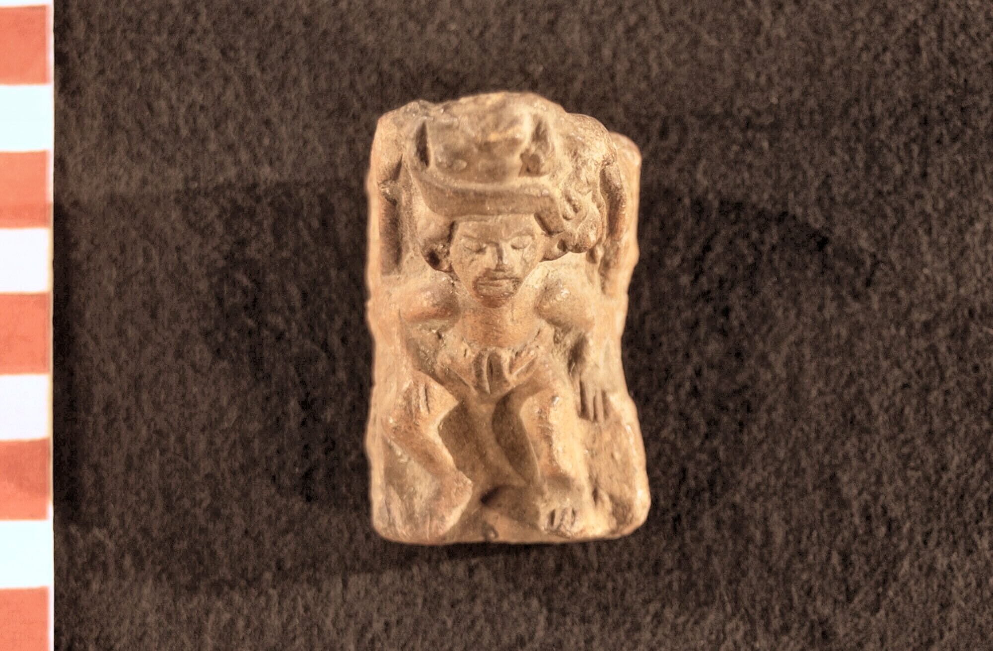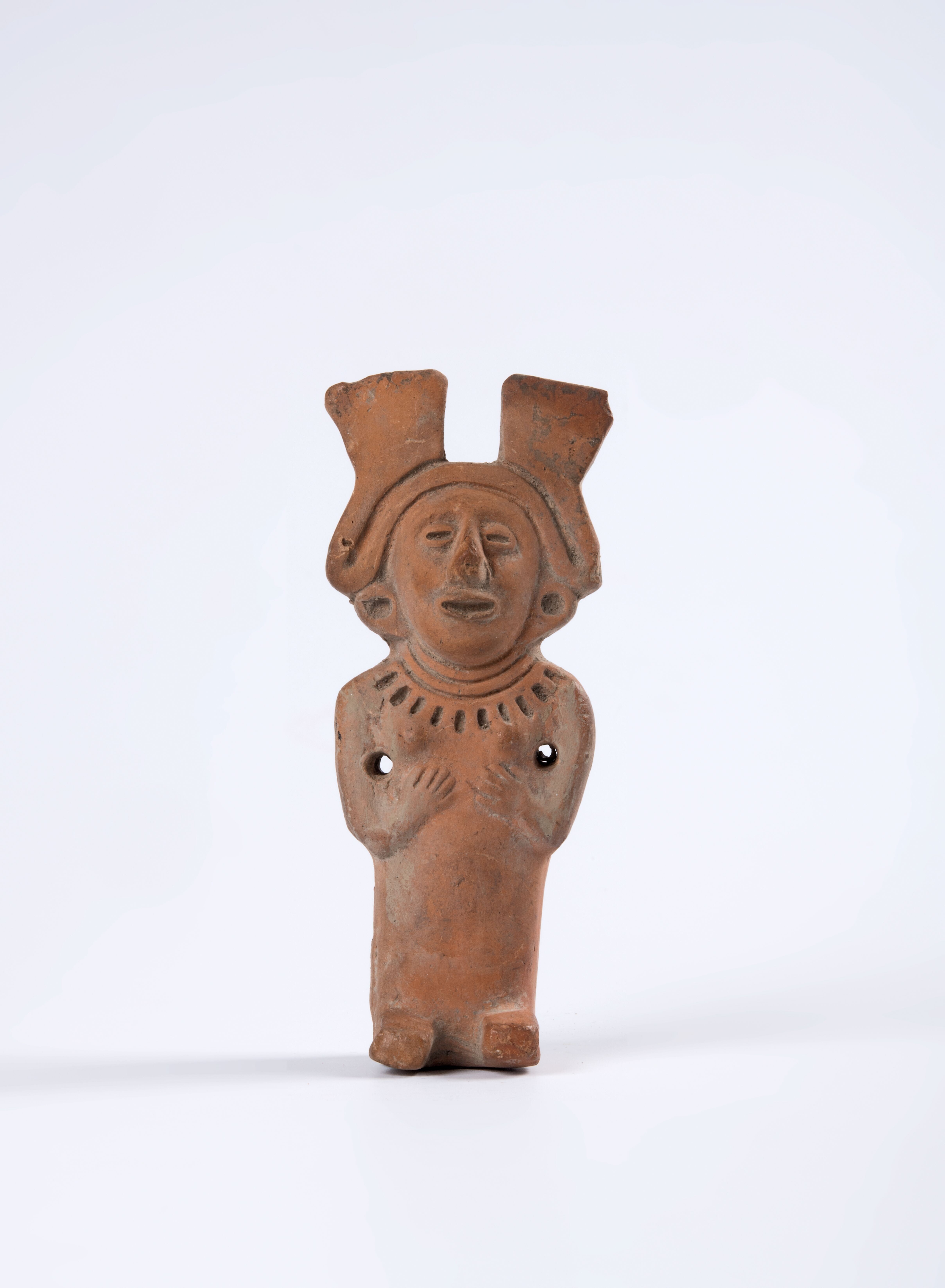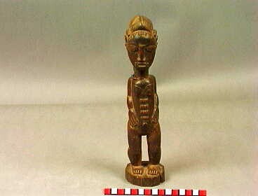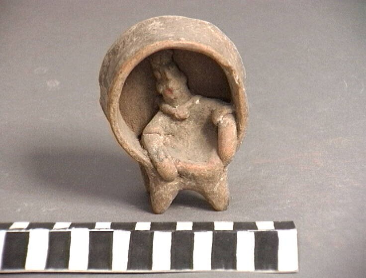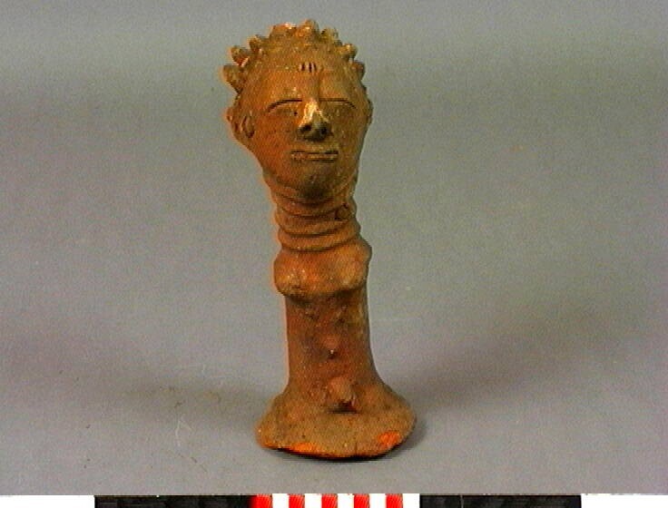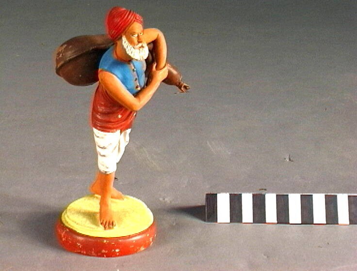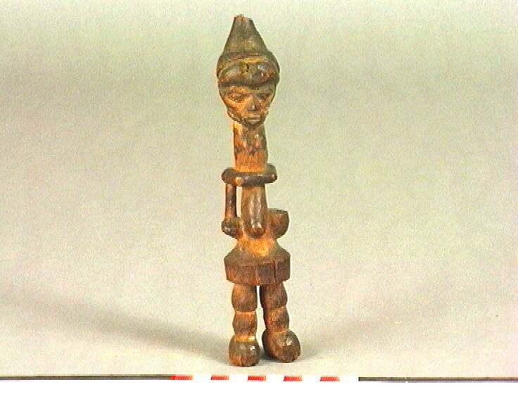 Beeld: een vrouw met een hoofdtooi en wikkelrok