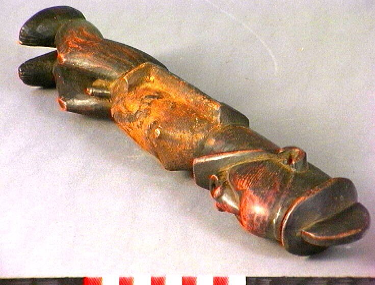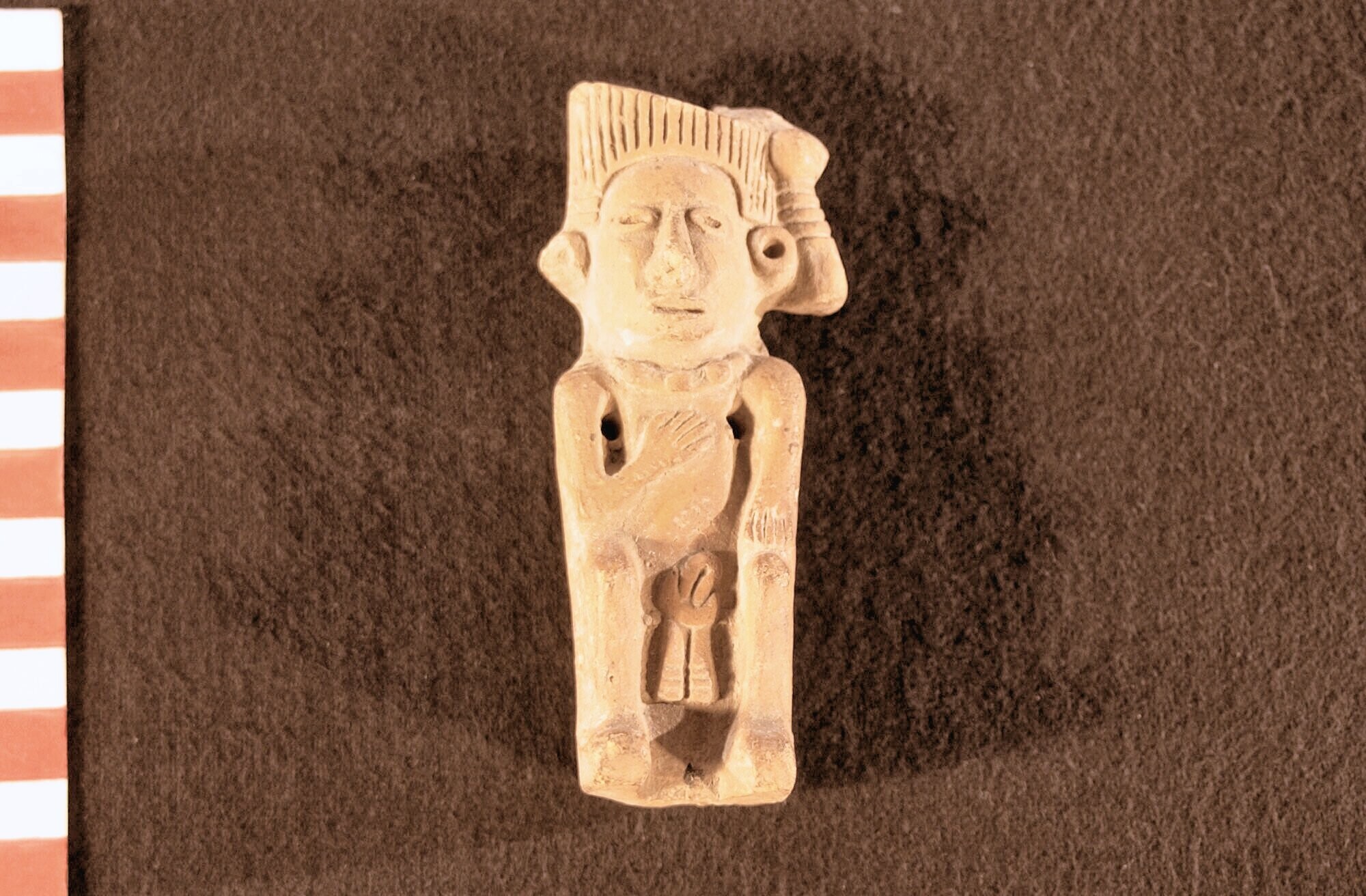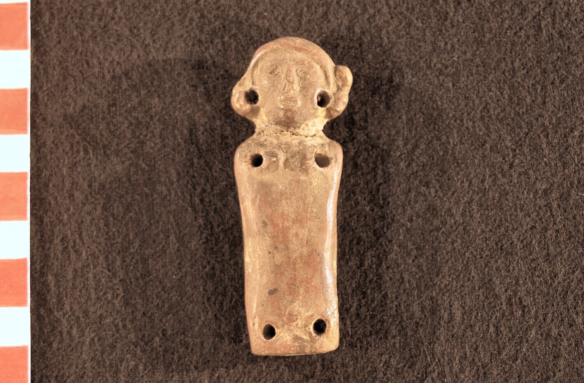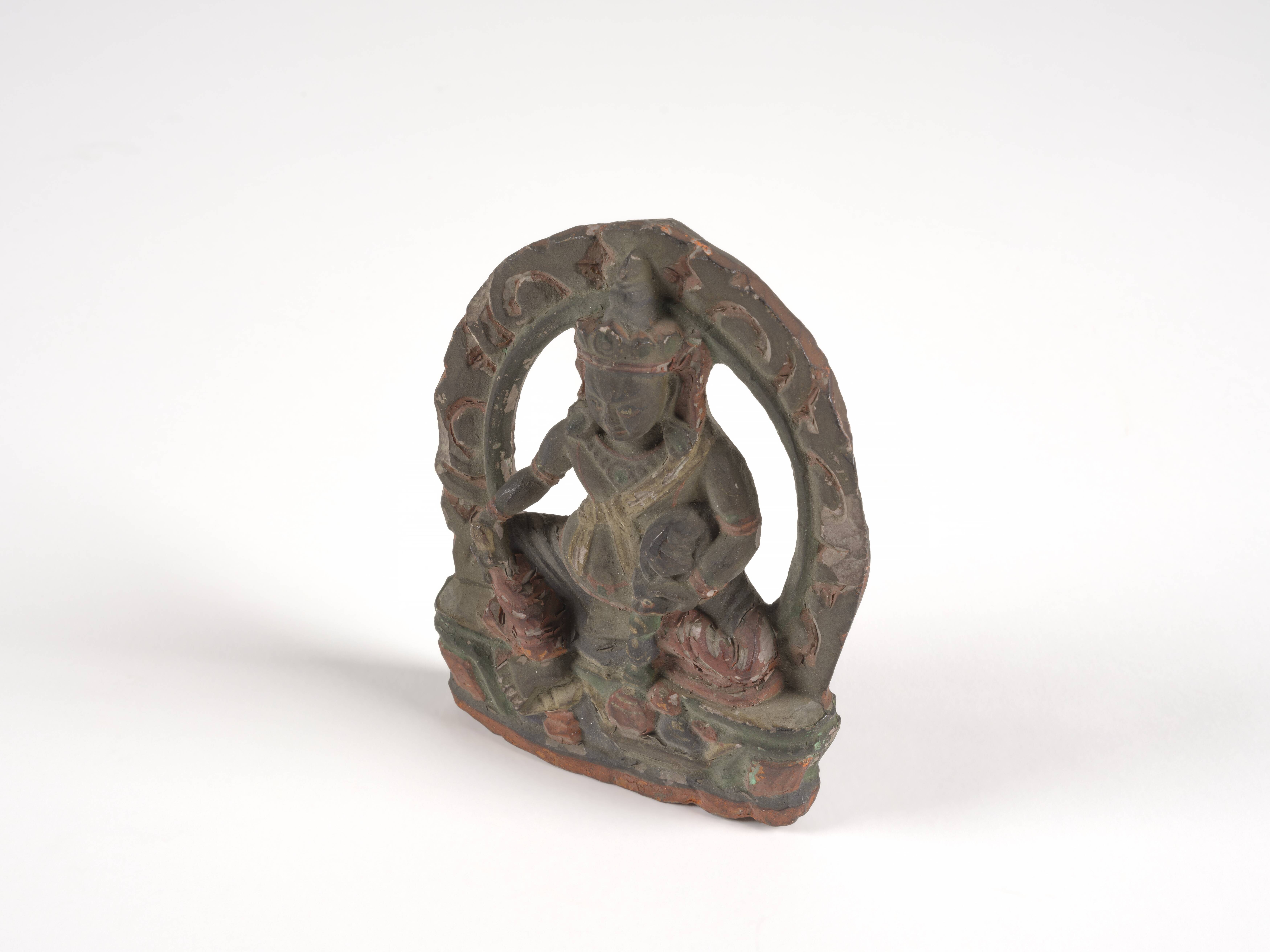 Beeld: een vrouw met een hoofdtooi en wikkelrok