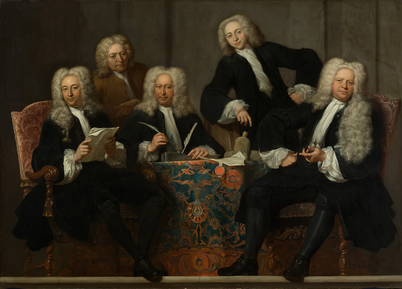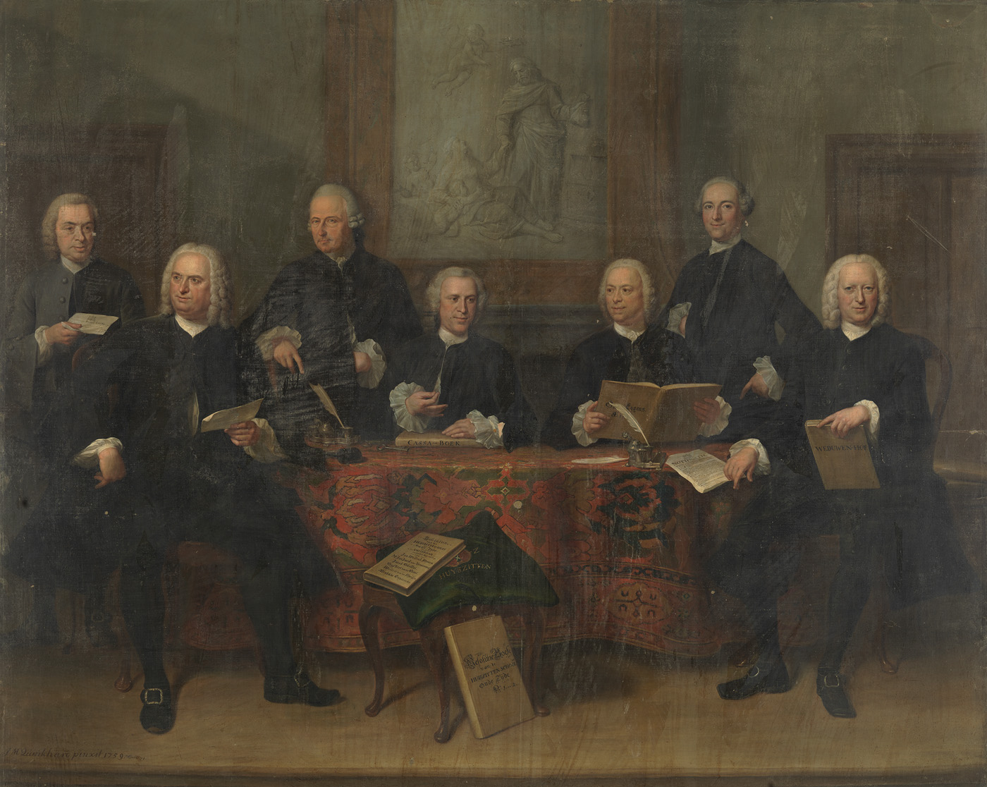 Zes regenten en de binnenvader van het Oudezijds Hui...