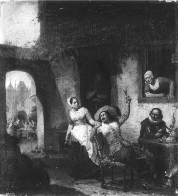 Krijgsvolk voor een herberg