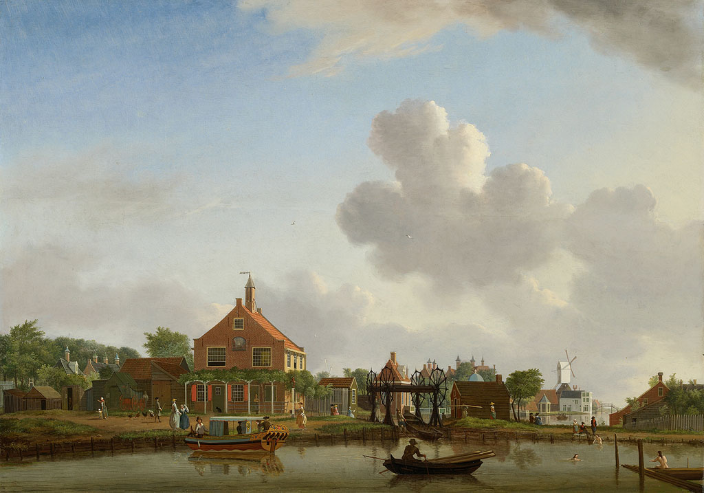 "Een stil water, regts verschillende schepen bij een...
