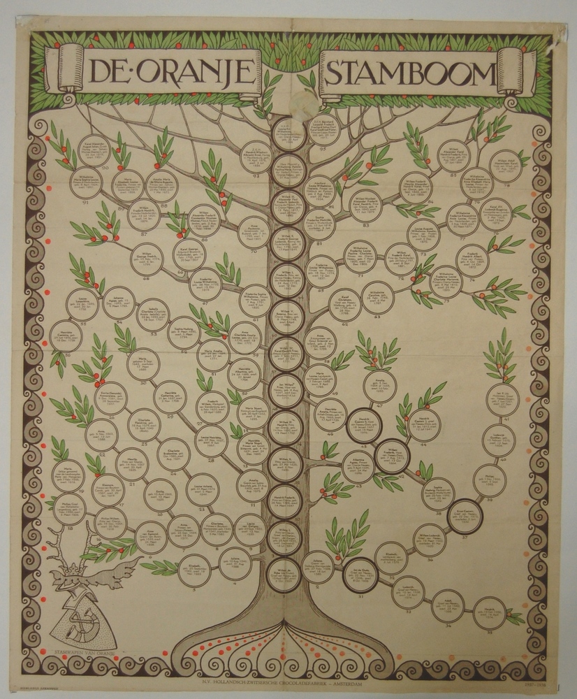 Plaat met stamboom Oranje van Willem de Rijke tot ko...