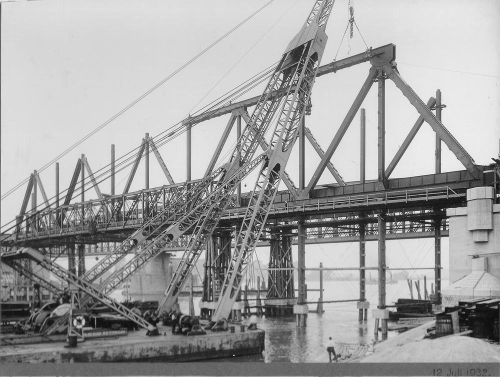 Bouw verkeers en spoorbrug over de waal bij Zaltbomm...