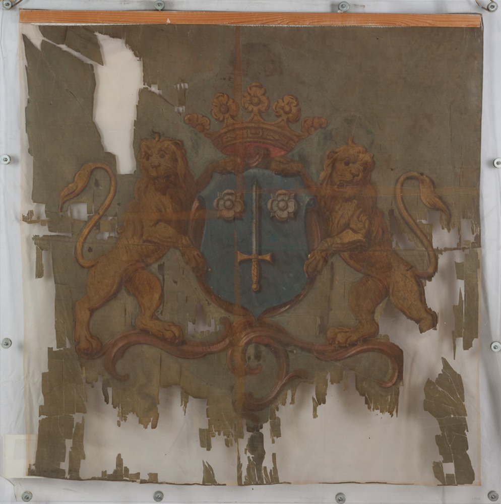 stadsvaandel Zaltbommel. Vierkant met stadswapen en ...