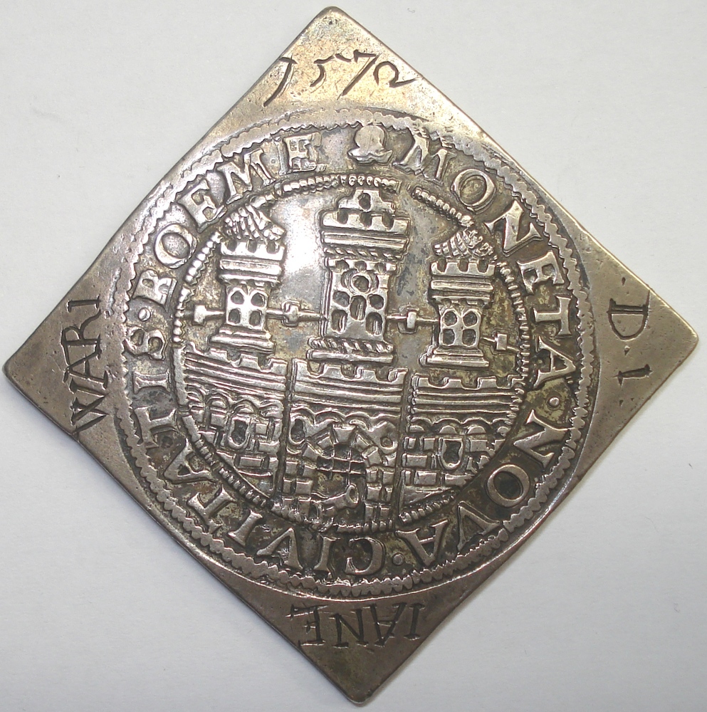Zilveren, vierkante Bommelse daalder, piedfort.