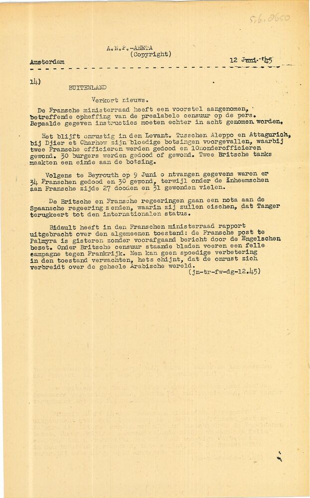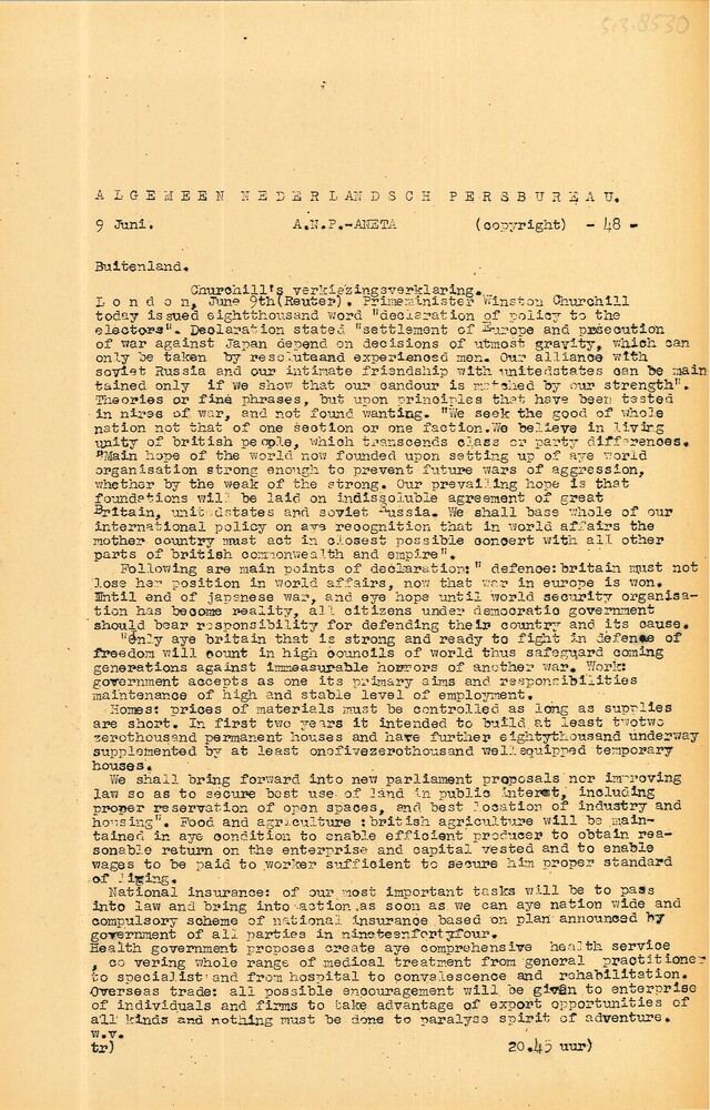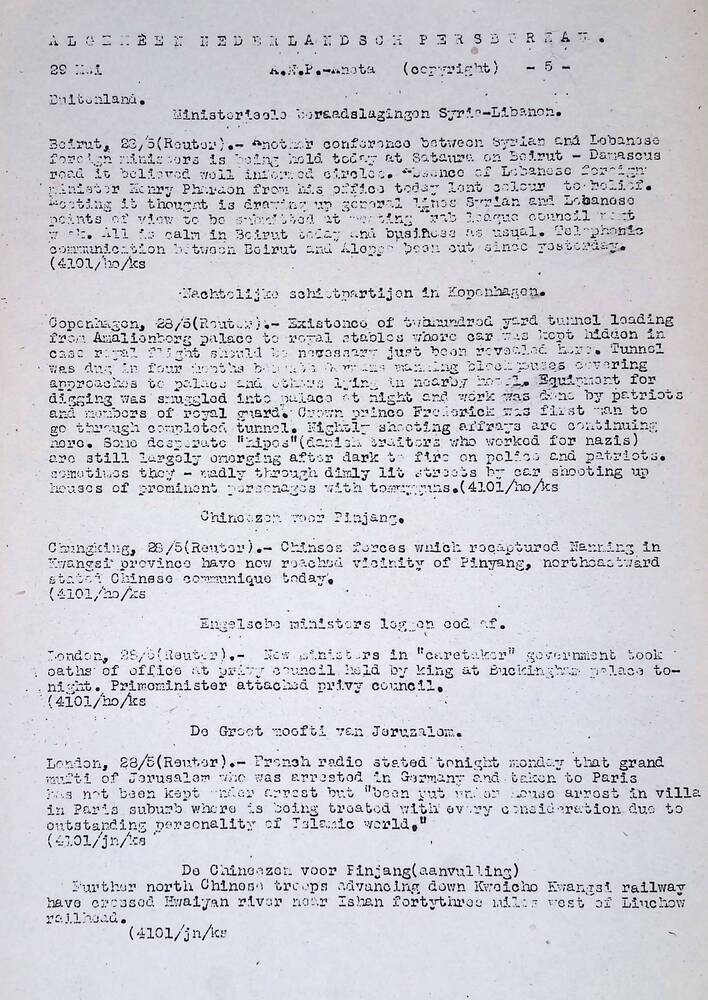 Algemeen Nederlandsch Persbureau, mededelingen, 29 m...