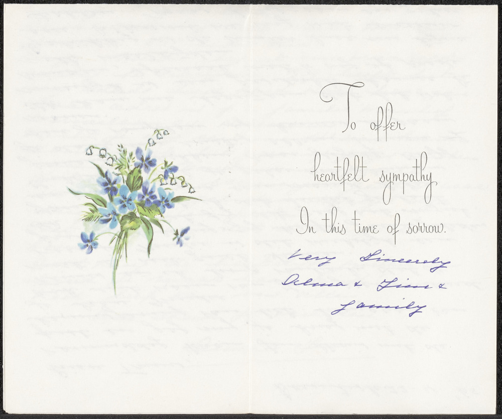 Brief/condoleancekaart van Mrs. J. A. Huxtable (Alma...