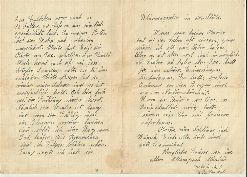 brief van de familie ( pleeggezin) Allenspach uit Zw...