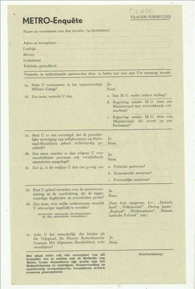 Metro-Enquete over tevredenheid wederopbouw, novembe...