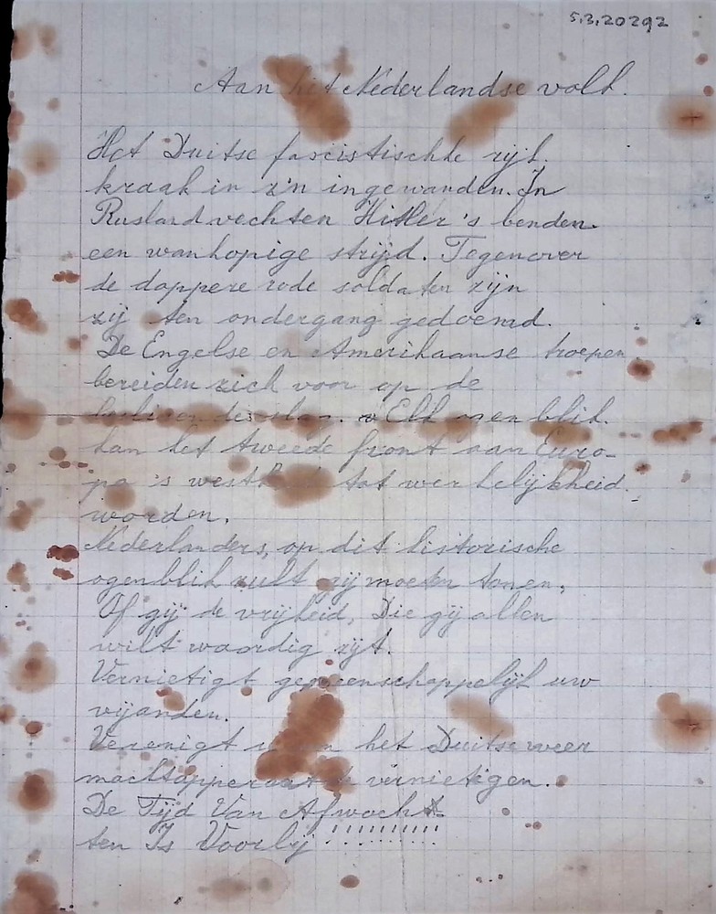 Vel met handgeschreven tekst: "Aan het Nederlandse v...