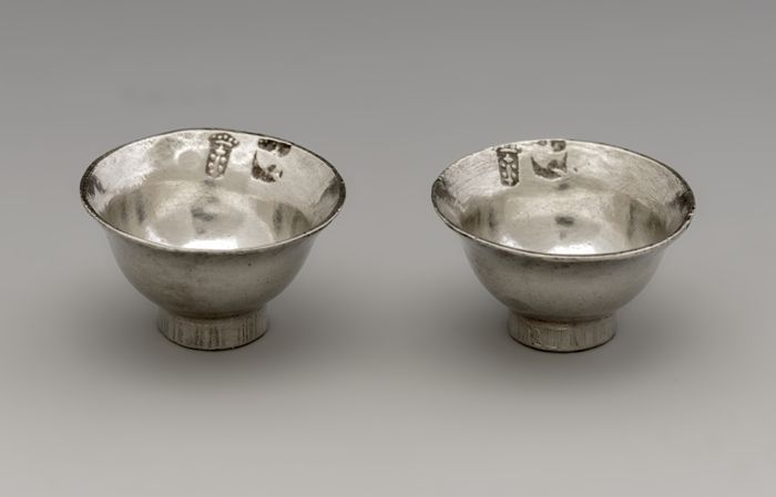 Twee zilveren miniatuur kommetjes