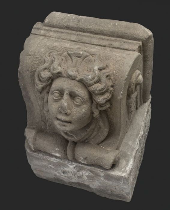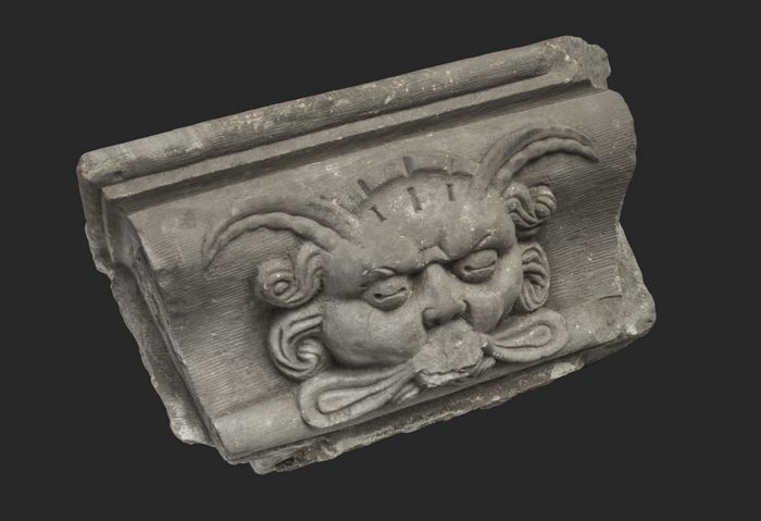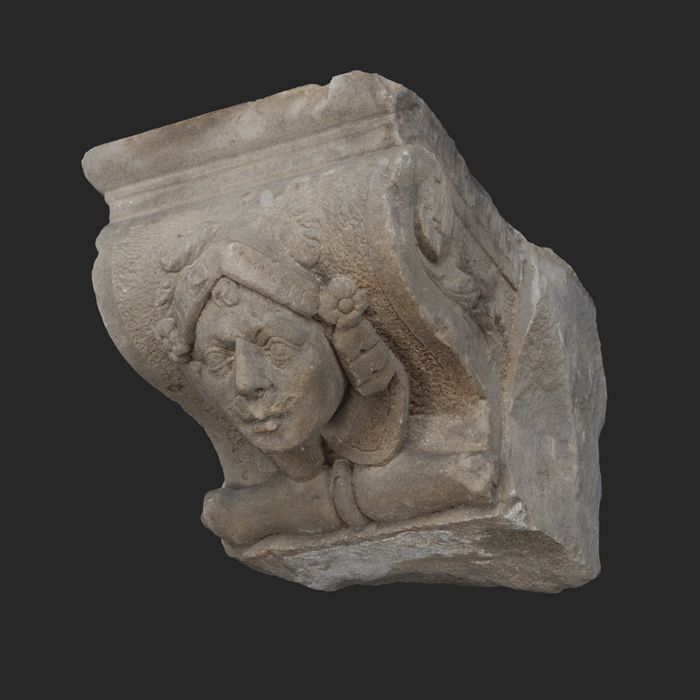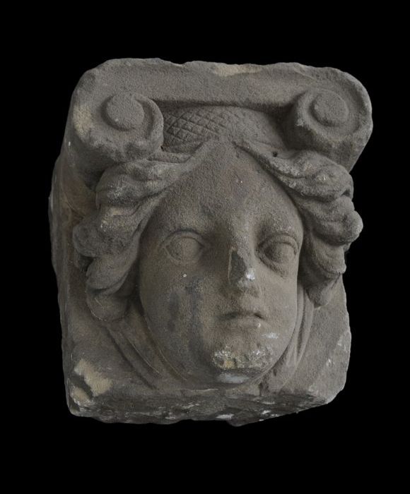 Hardstenen console, saterkop met snor (bij 10473 en ...
