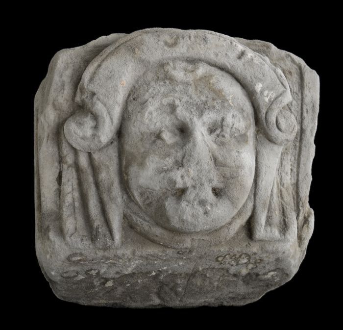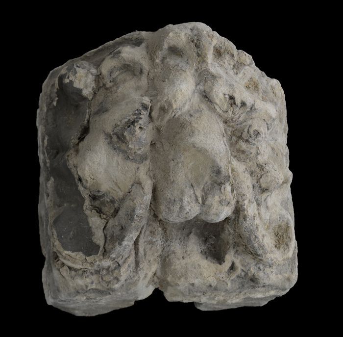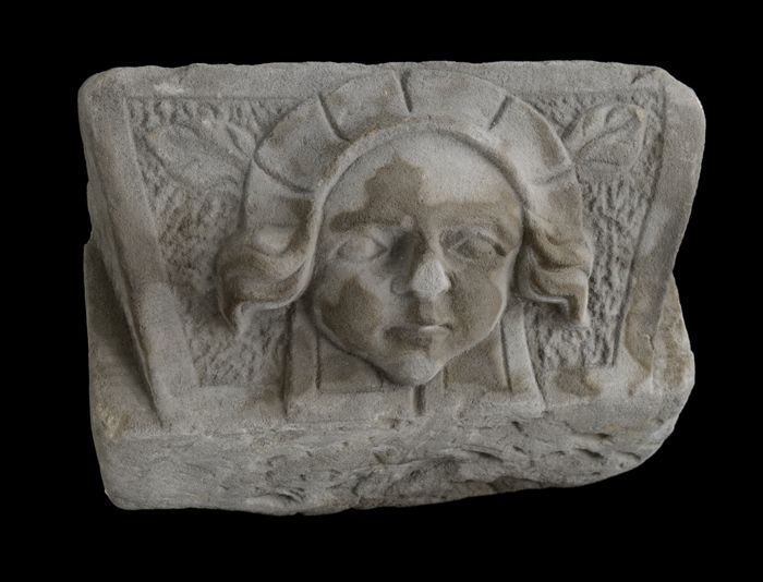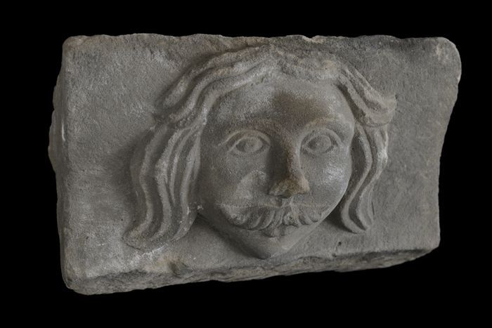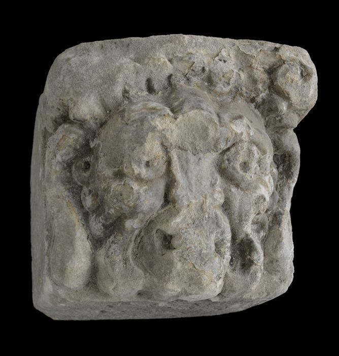 Hardstenen sluitsteen met leeuwenkop