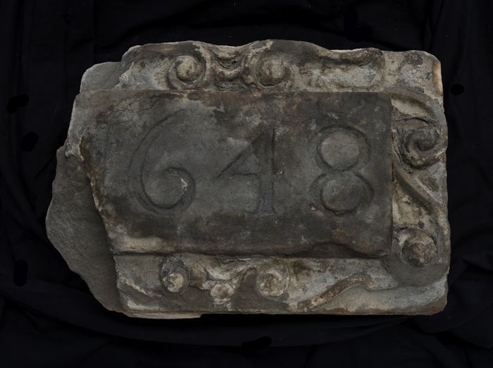 Fragmenten gevelsteen van poortje uit brouwerij De T...