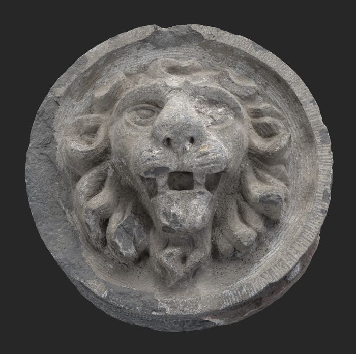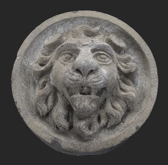 Ronde gevelsteen met leeuwenkop (als 10303 en 10304)