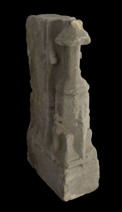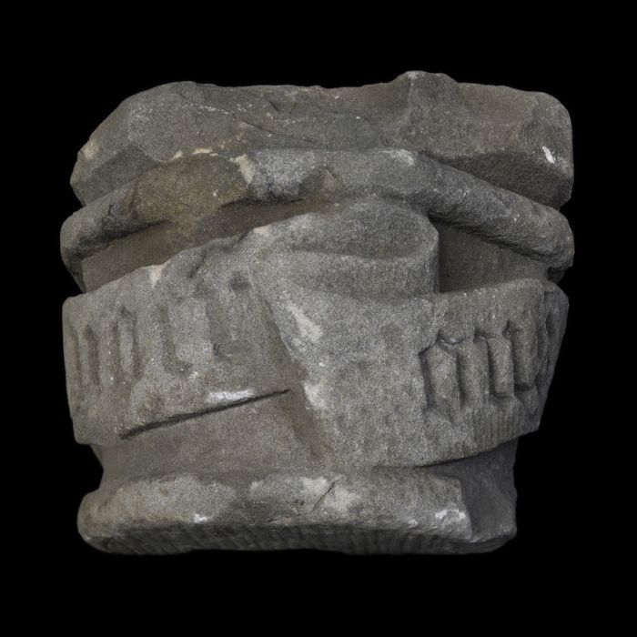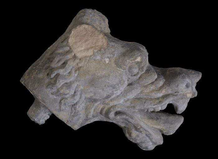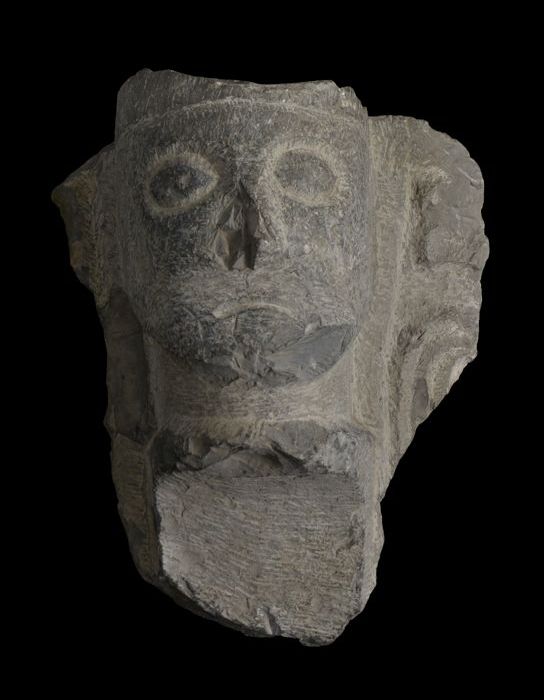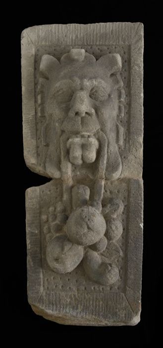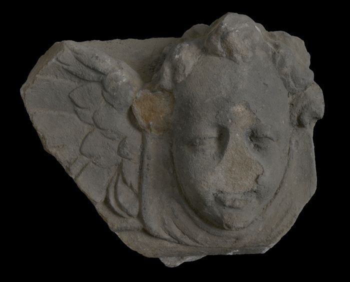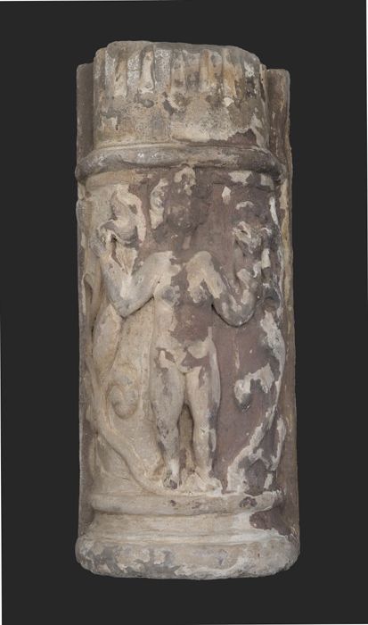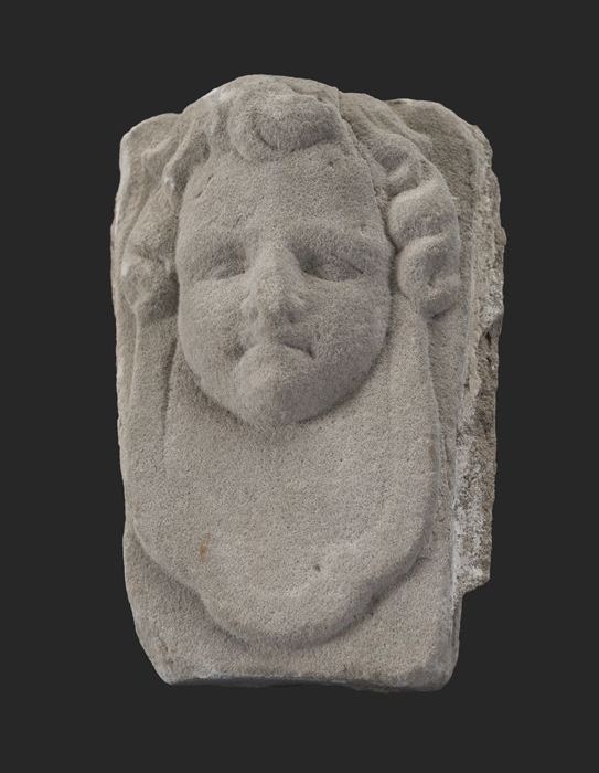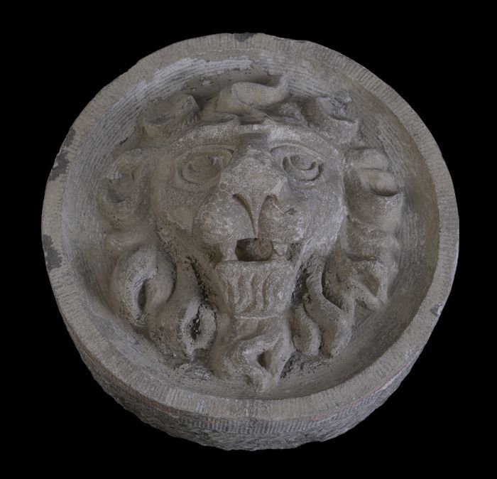 Fragment doopvont met kop op aanzet zuil