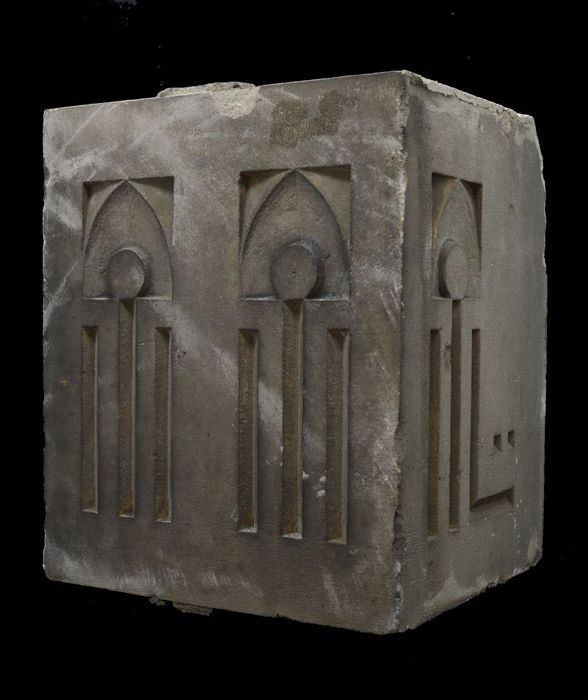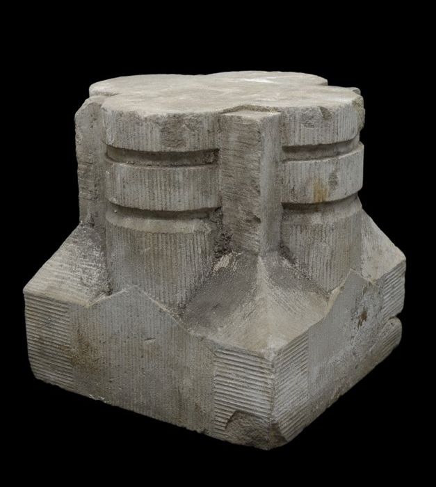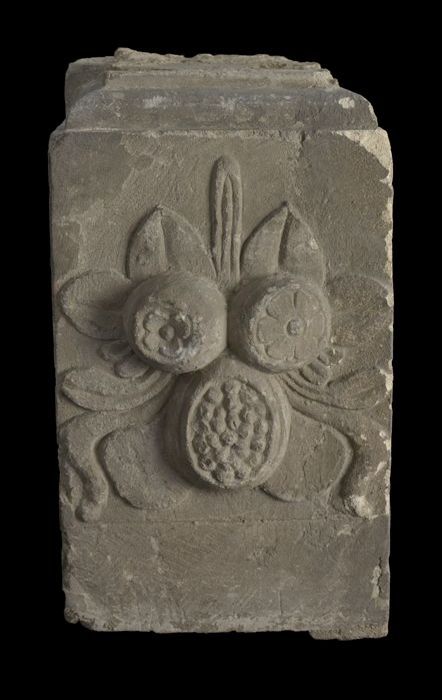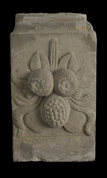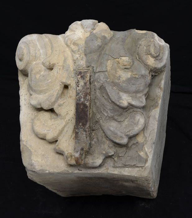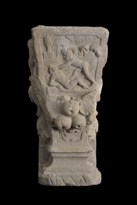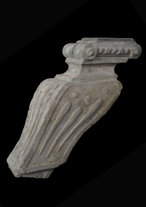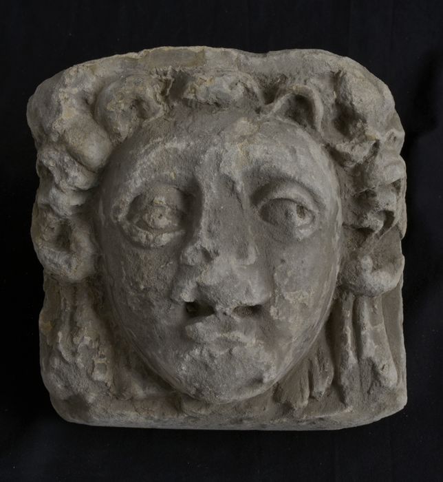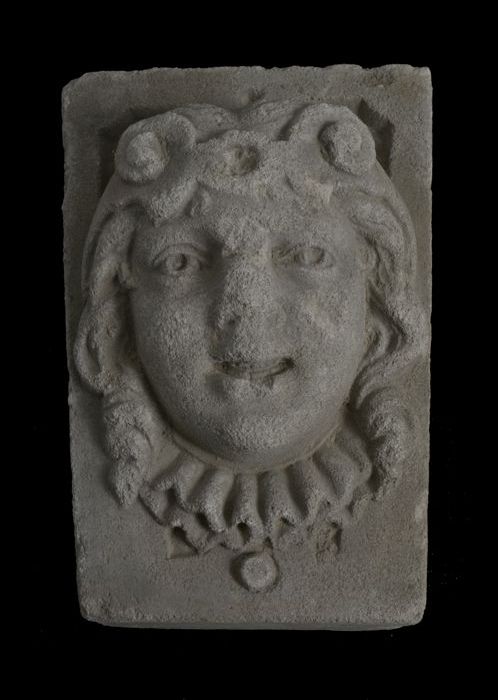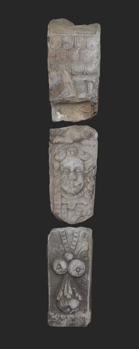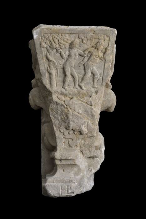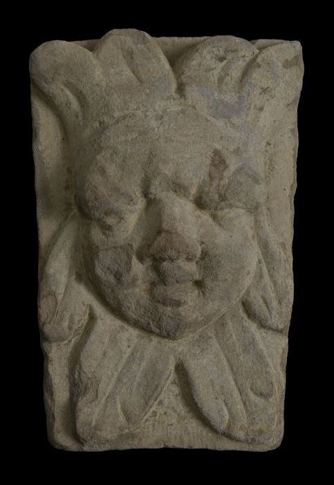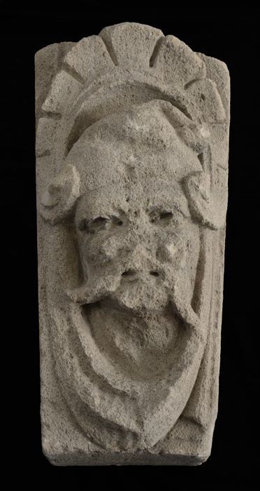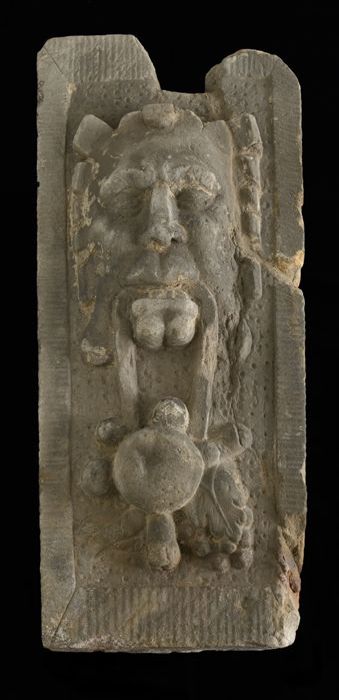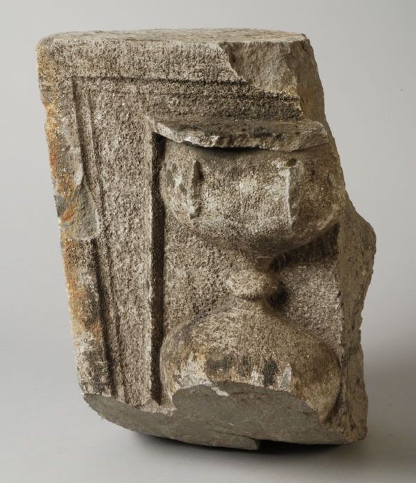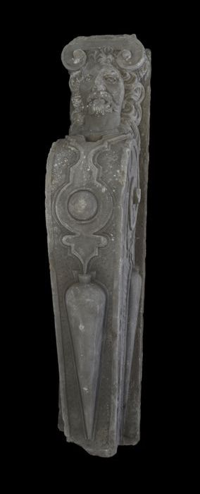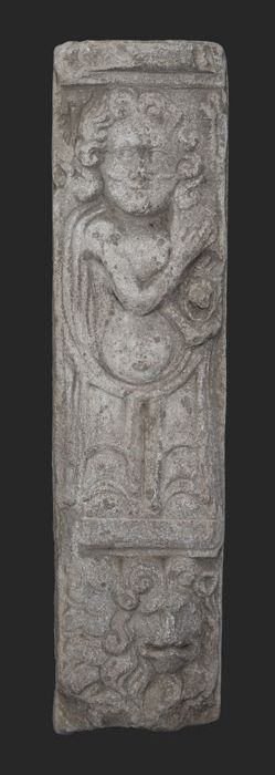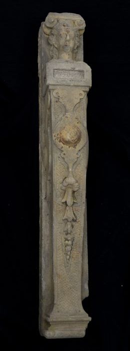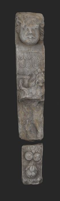 Fragment pilaster met gezicht en cannelure