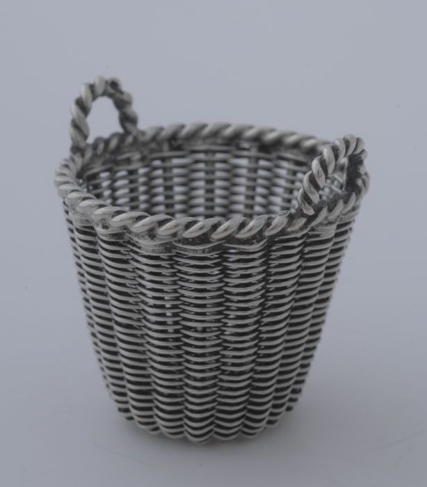 Zilveren miniatuur draagmand