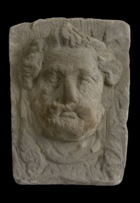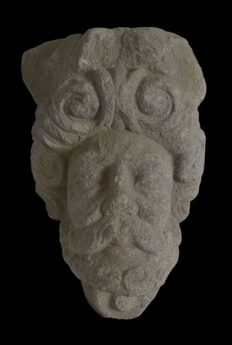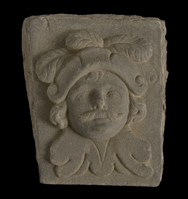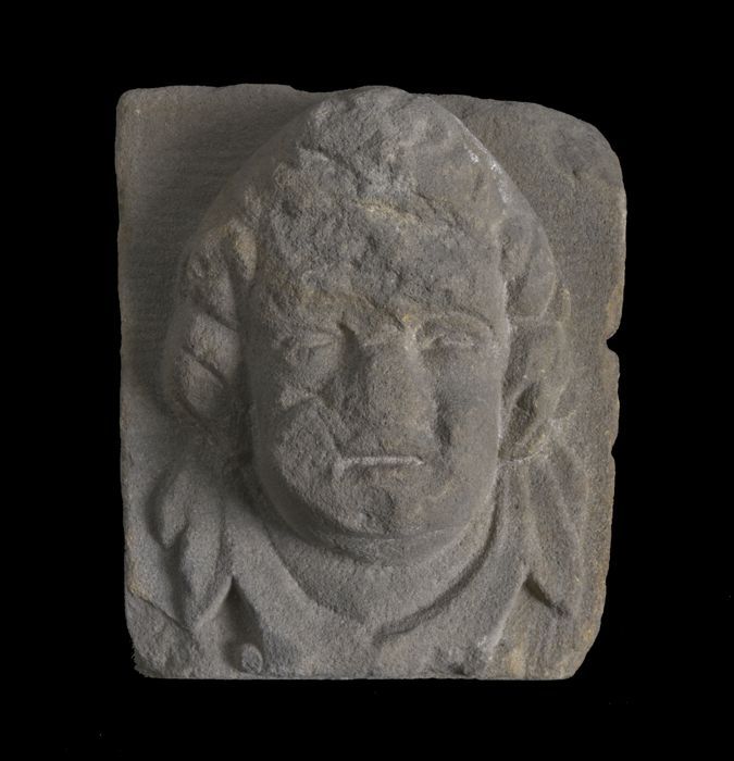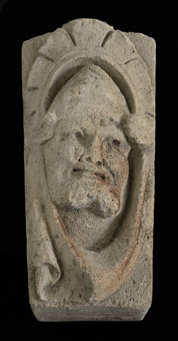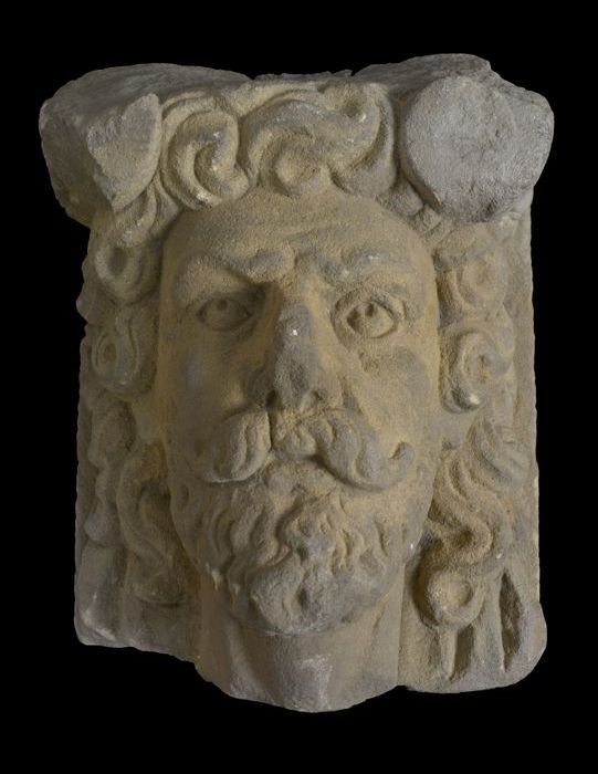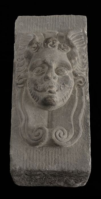 Sluitsteen met gevelkop, naar rechts kijkende man (b...