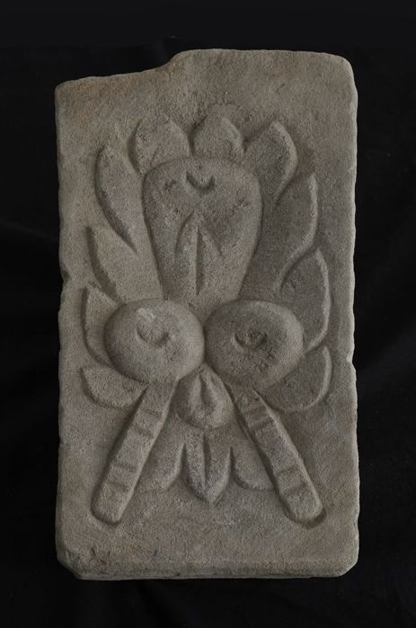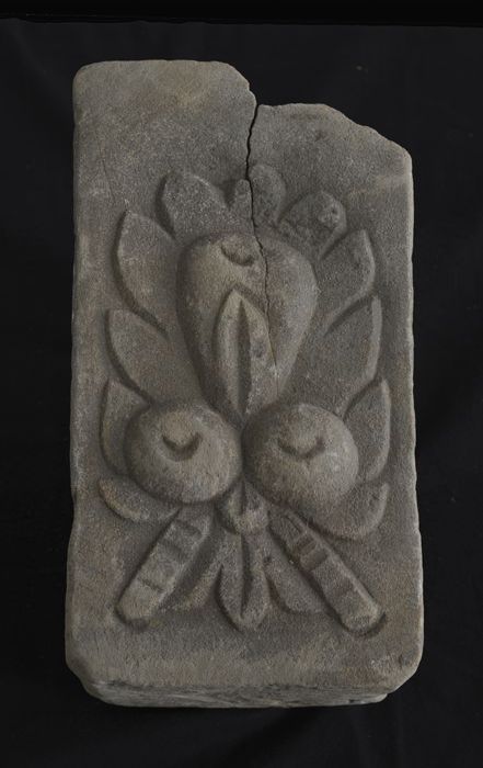 Fragment gevelsteen in de vorm van sluitsteen met za...