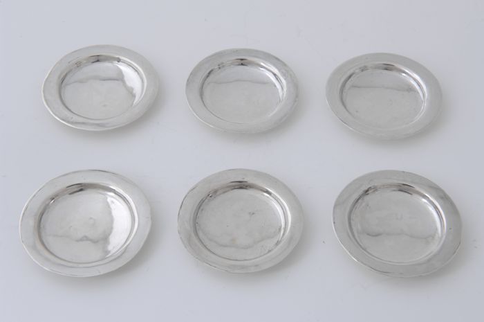 Zes ronde zilveren miniatuur borden
