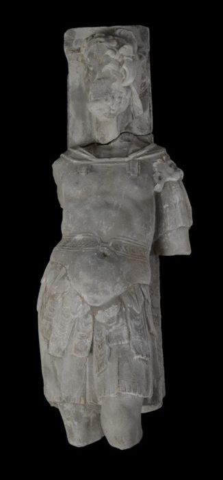 Pilaster met Romeinse soldaat en acanthusmotieven (b...