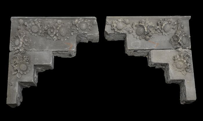 Gevelornament met bloemen, in twee delen (pendant va...
