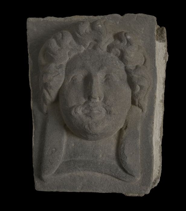 Sluitsteen met gevelkop, mannenhoofd met vleugels (M...