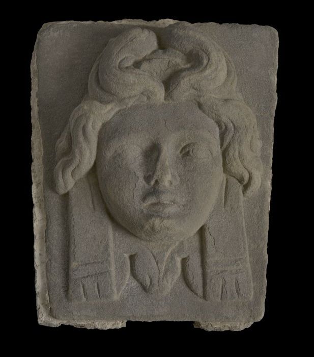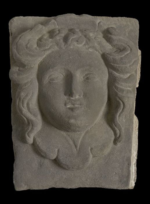 Sluitsteen met gevelkop, vrouw met kraag (als 10311)
