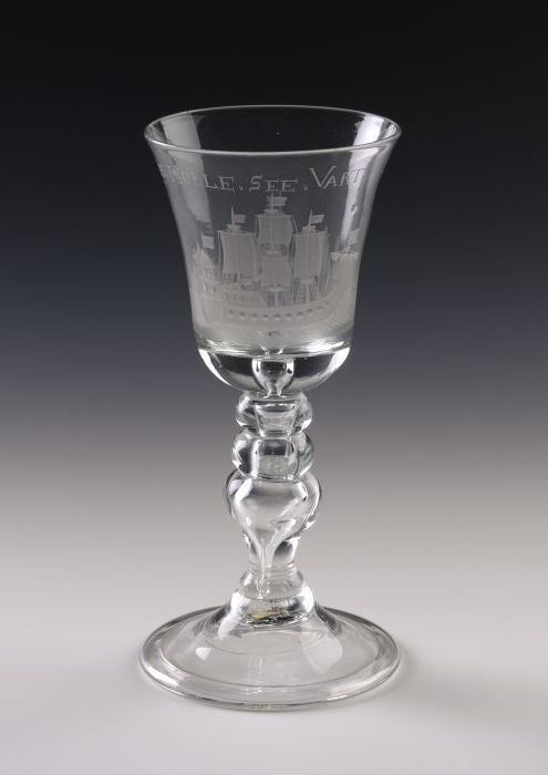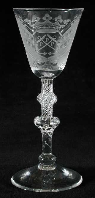Kelkglas gegraveerd met wapenschild met "P P P" (Adm...