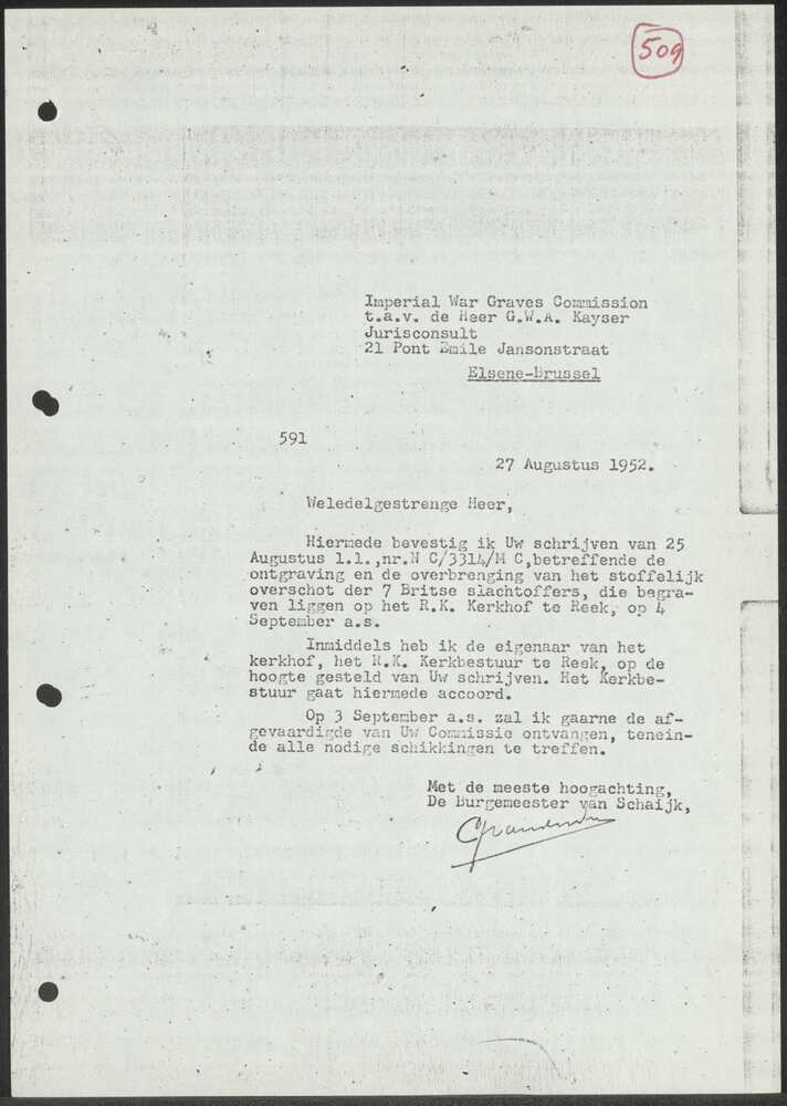 Brief van de burgemeester van Schaijk