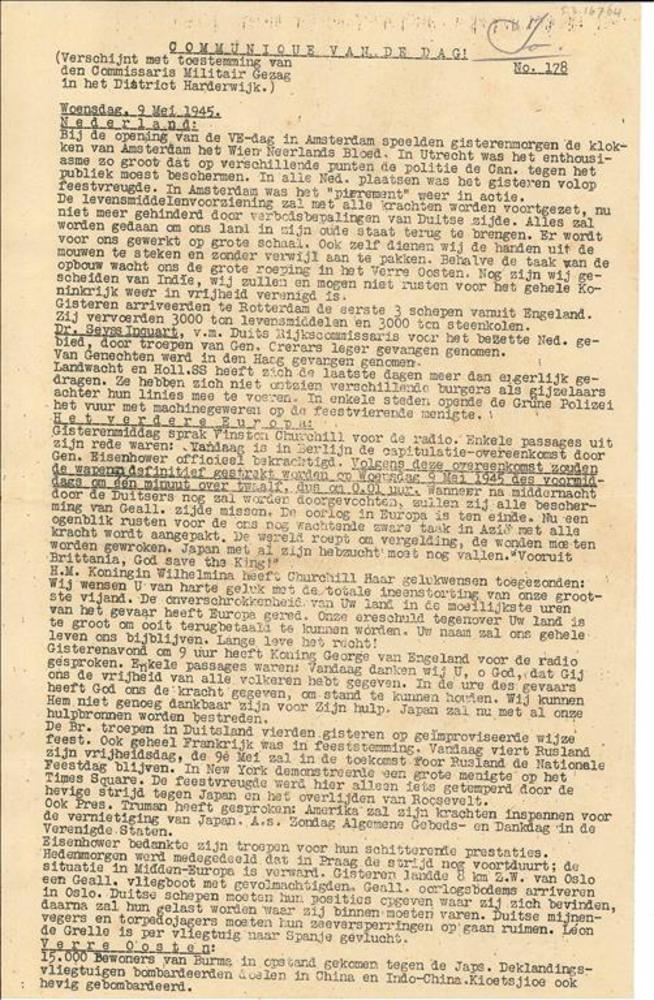 Communique van de dag, Nr. 178, Woensdag 9 mei 1945 ...