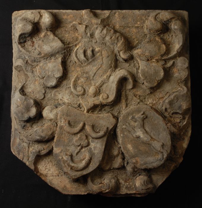 Fragment gevelsteen, familiewapen Van Gestel, met dr...