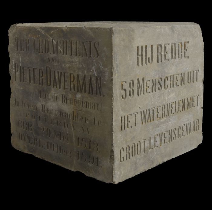 Vierkante gedenksteen met rondom vier teksten ter er...