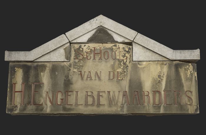 Gevelsteen met tekst "School van de H. Engelbewaarders"