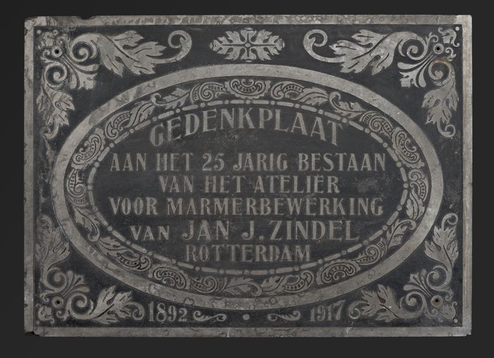 Gedenkplaat atelier marmerbewerking Jan J. Zindel, 1...