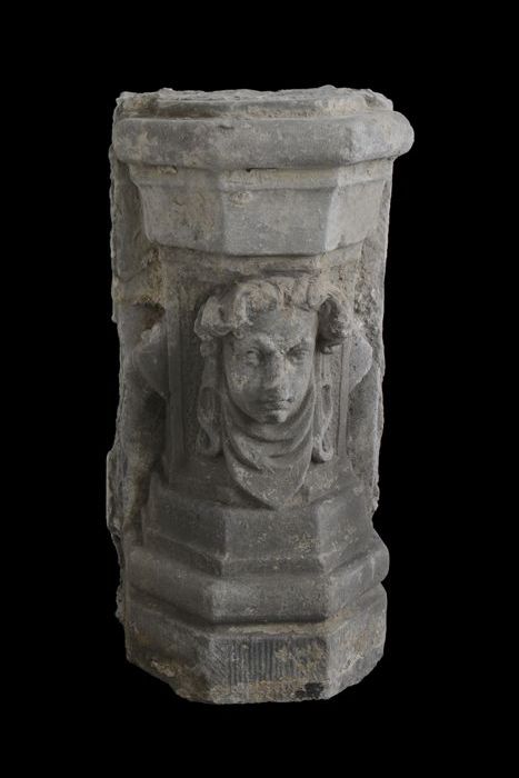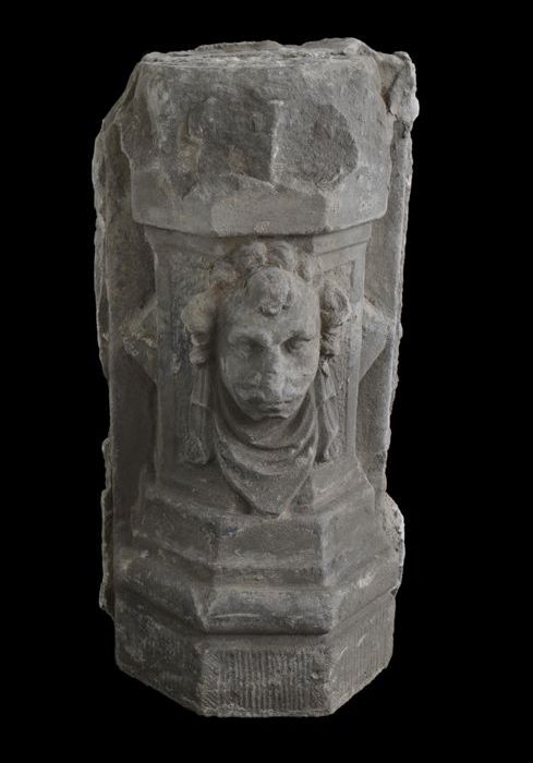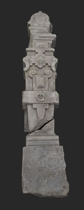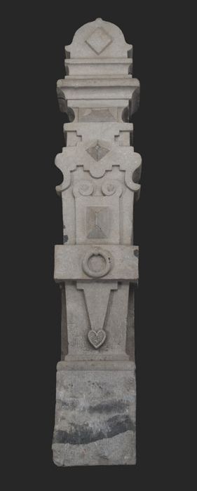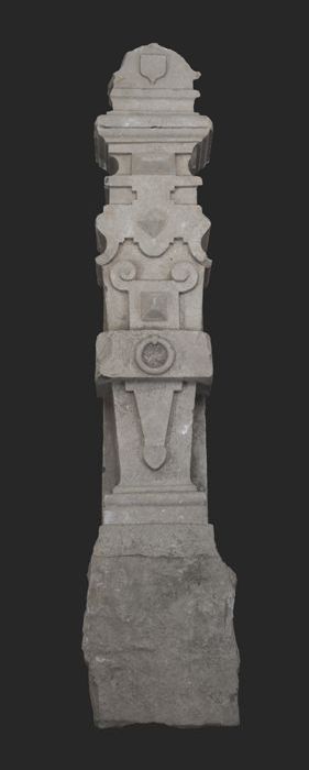 Stenen stoeppaal, opgebouwd uit verschillende profie...