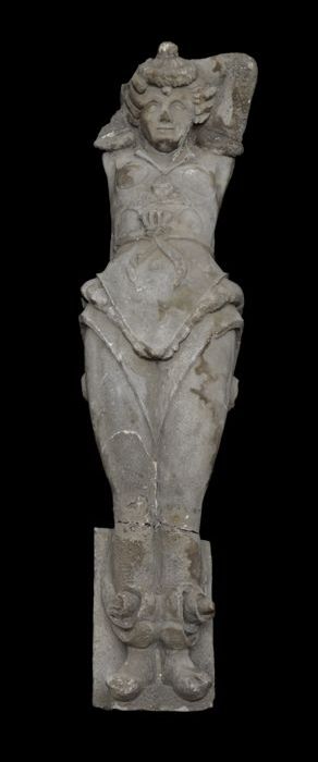 Gipsen mannelijke figuur als schoorsteenwang van sch...