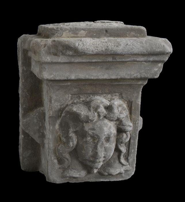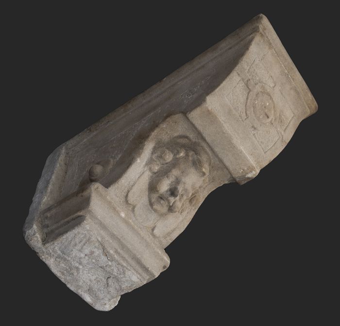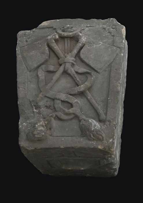 Steen uit gevel vleeshal, raamversiering