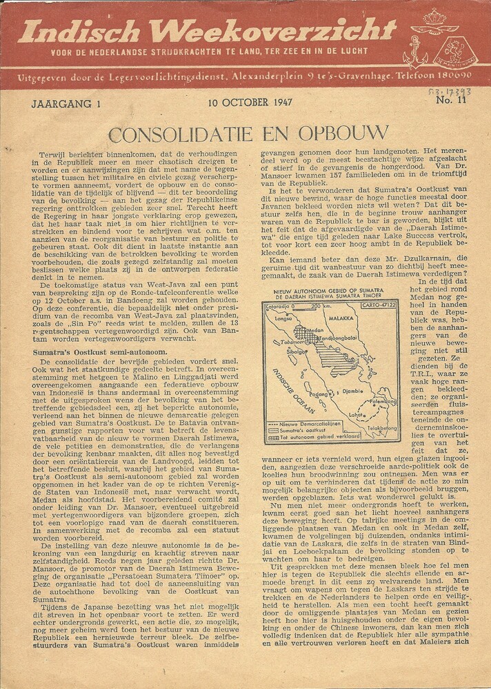 Indisch Weekoverzicht voor de Nederlandse strijdkrac...