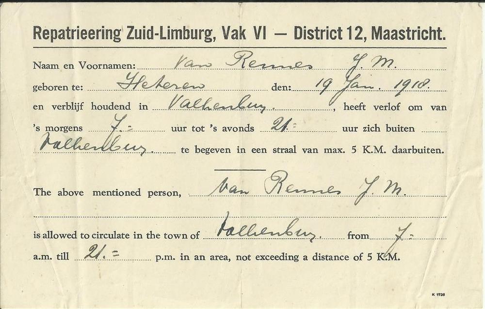Bewijs van Verlenen van verlof om van 's morgens 7 u...