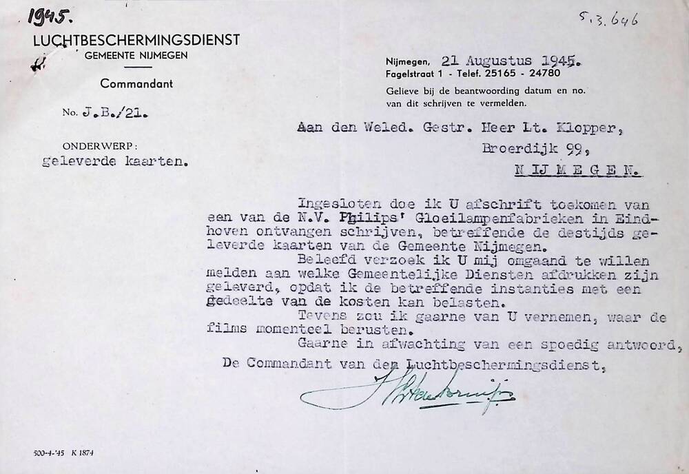 Luchtbeschermingsdienst Nijmegen 1945-1946. Doorslag...