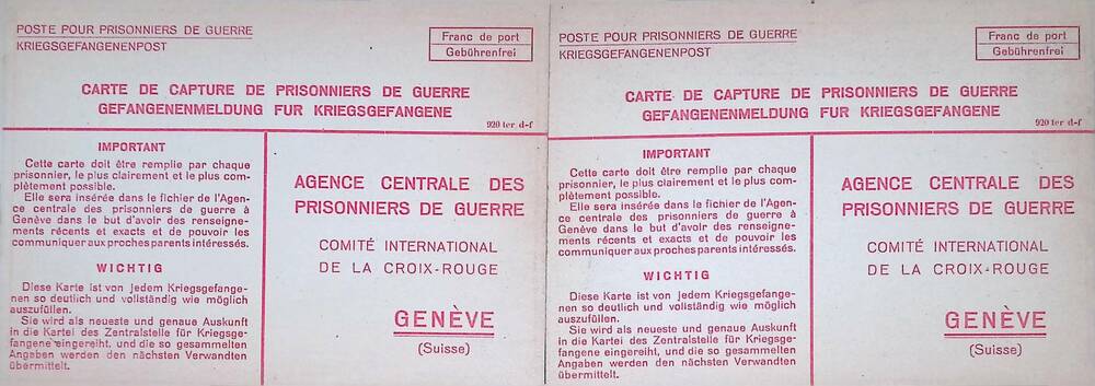 Kaart, 2 maal, Gefangenenmeldung für Kriegsgefangene.