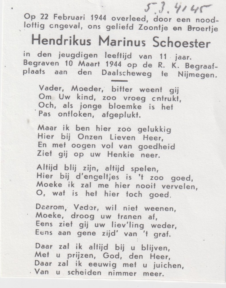 bidprentje (copie) Hendrikus Marinus Schoester