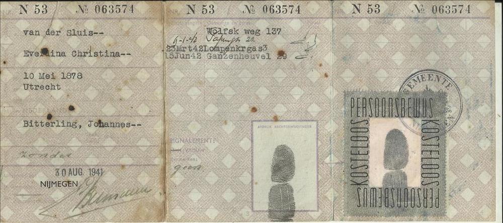 Persoonsbewijs op naam van Van der Sluis, E.V,