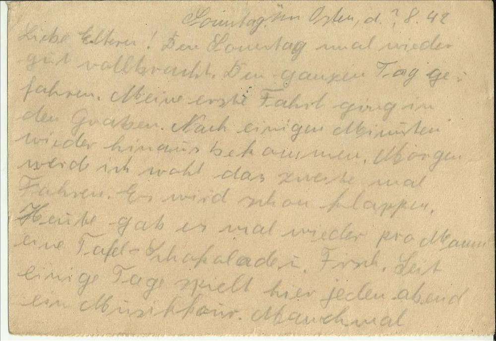 Briefkaart van Heinrich (soldaat) Honig aan de ouder...