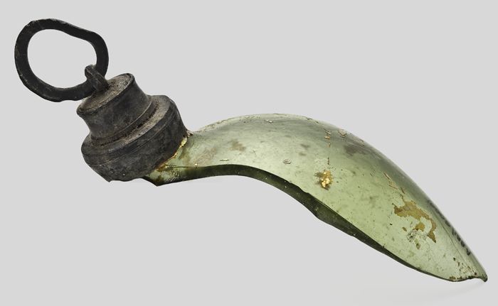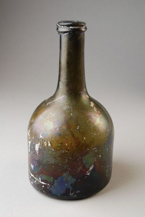Groene fles met slanke hals, opgestoken ziel